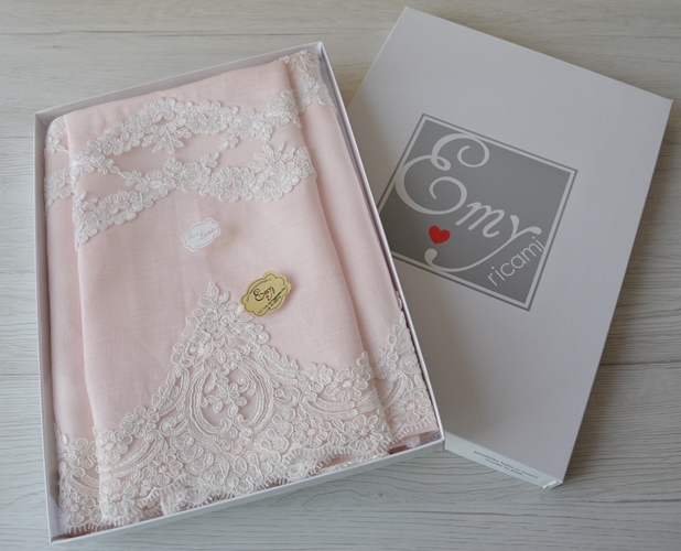 OFFERTA COPPIA ASCIUGAMANI SPUGNA E TULLE RICAMATO DI EMY RI