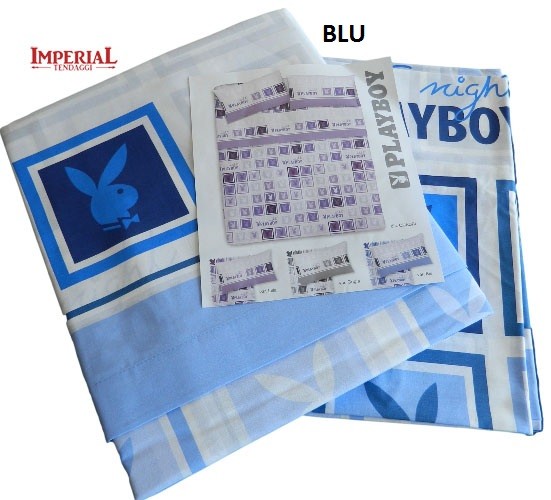 SET LENZUOLA COTONE MATRIMONIALE PLAY BOY COLORE BLU