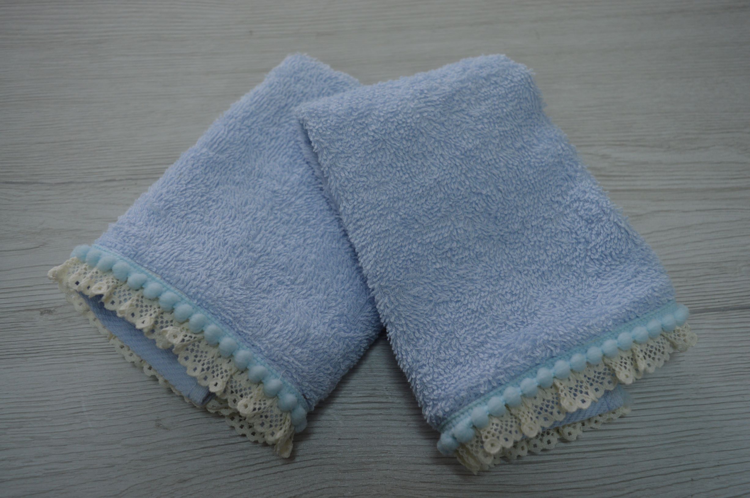 SET 3 PZ LAVETTE MIS 30X30 IN SPUGNA DI PURO COTONE 100% 500 GR AL MQ RIFINITO CON PIZZO AVORIO E CIELO LAVETTA COL CIELO POSSIBILE SU RICHIESTA FORNITURE X BOMBONIERE ECC...