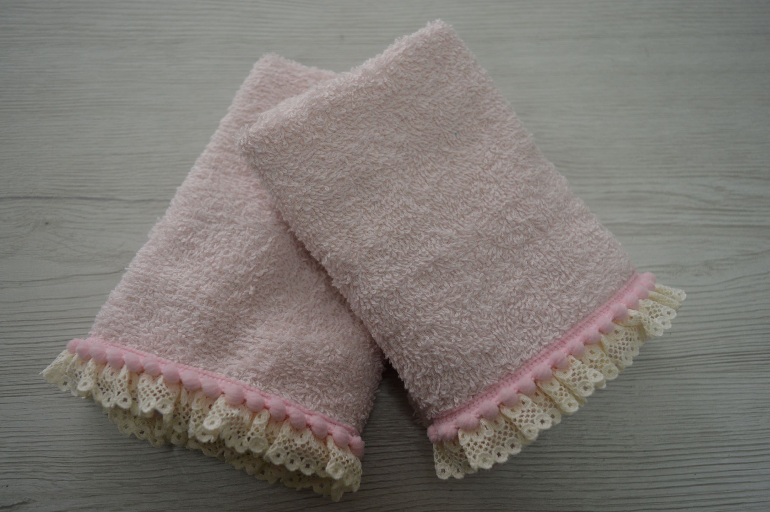 SET 3 PZ LAVETTE MIS 30X30 IN SPUGNA DI PURO COTONE 100% 500 GR AL MQ RIFINITO CON PIZZO AVORIO E ROSA LAVETTA COL ROSA CONFETTO POSSIBILE SU RICHIESTA FORNITURE X BOMBONIERE ECC...