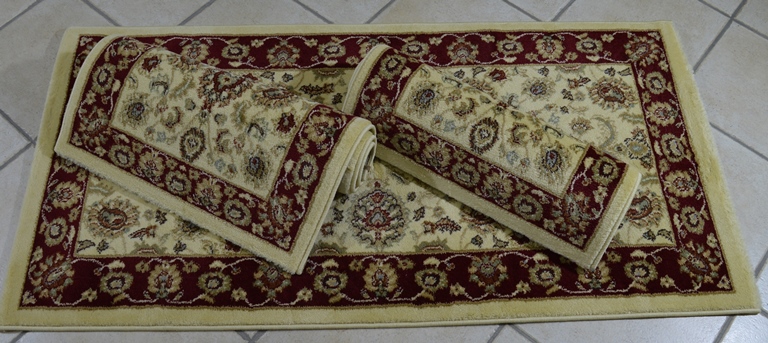 COMPLETO SCENDILETTO 3 PZ COLORE CREMA ROSSO COMPOSIZIONE 100% POLIPOPRILENE MISURA: 1 GRANDE 75X145 + 2 PICCOLI 60X110