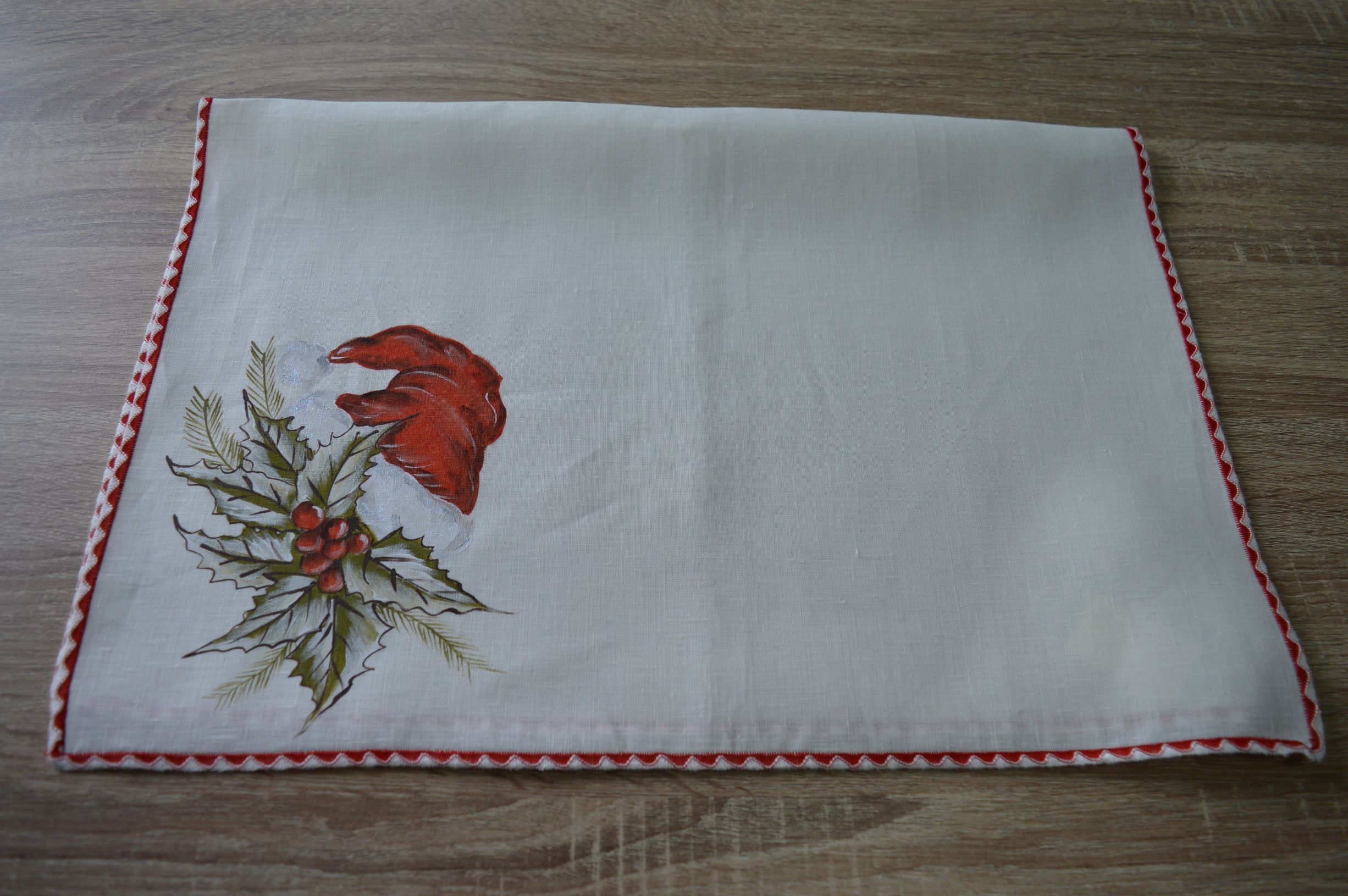 STROFINACCIO ARTIGIANALE DI EMY RICAMI COMP 100% PURO LINO ITALIANO COLORE AVORIO DIPINTO A MANO CON DISEGNI NATALIZI MIS CM 50X68 VIENE CONSEGNATO IN UNA ELEGANTISSIMA SCATOLA DA REGALO PERSONALIZZATA EMY RICAMI LAVORAZIONE ARTIGIANALE SU RICHIESTA SI PUO ANCHE PERSONALIZZARE CONTATTANDO I NOSTRI INFO