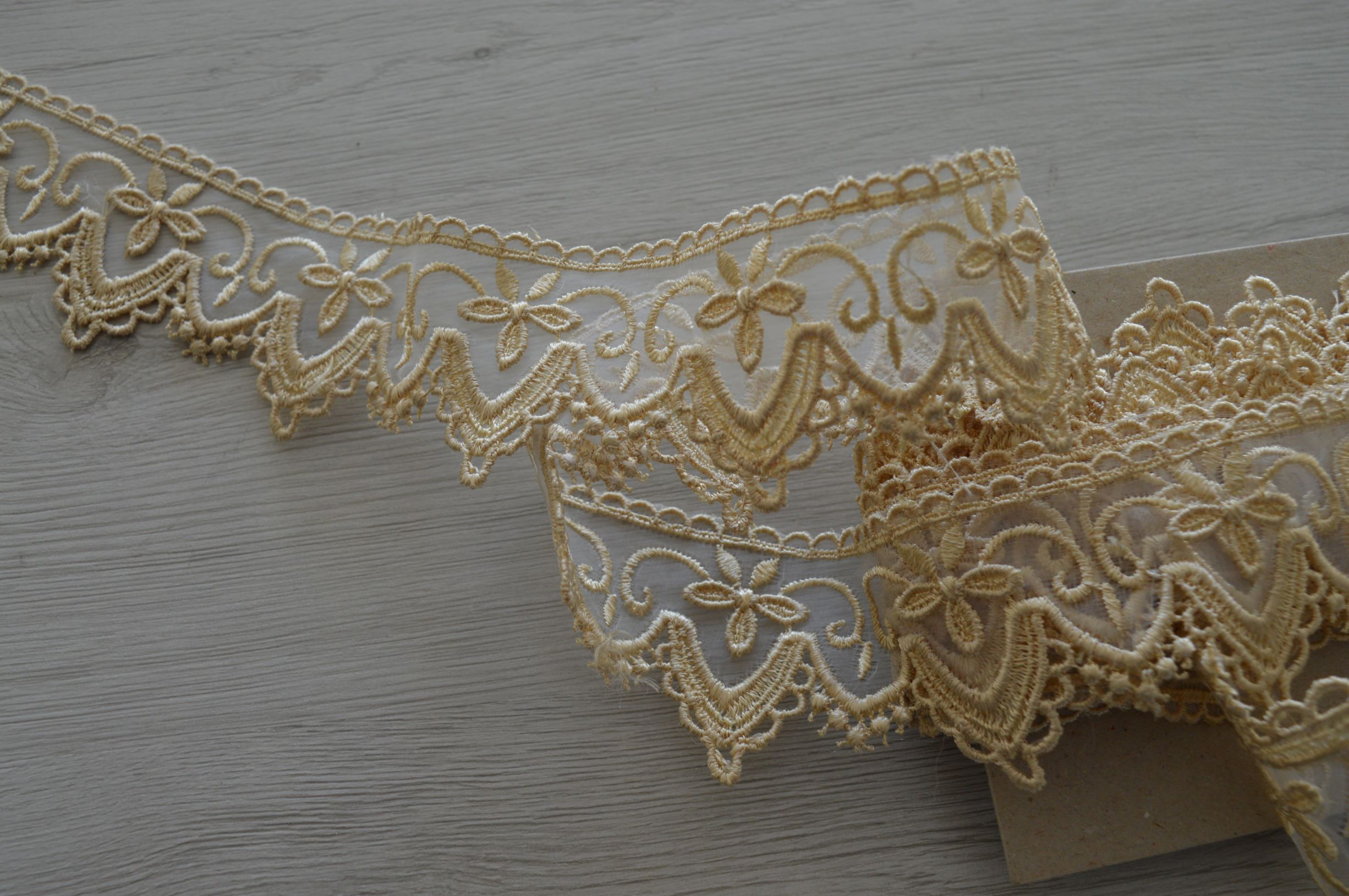 INTRAMEZZO DI TULLE RICAMATO A METRAGGIO COL. BEIGE ALTO CM