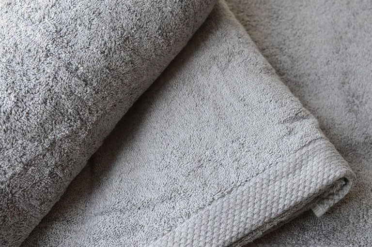 telo spugna colore grigiotortora composizione 100% cotone misura piccola cm 137x90 peso 500gr al mtq rifinita in basso con greca da 3cm