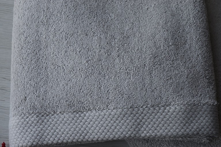 telo spugna colore grigio perla composizione 100% cotone misura piccola cm 137x90 peso 500gr al mtq rifinita in basso con greca da 3cm