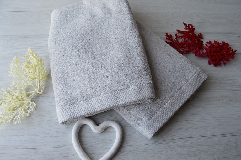 telo spugna colore grigio perla composizione 100% cotone misura piccola cm 137x90 peso 500gr al mtq rifinita in basso con greca da 3cm