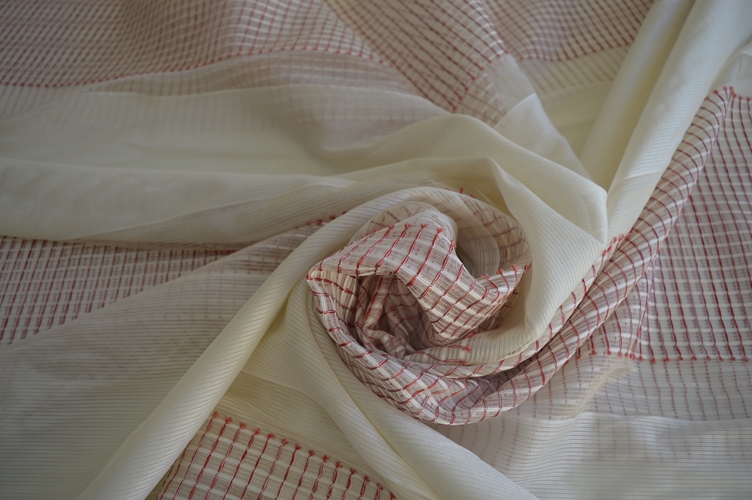 TENDA DA INTERNI ART MARATEA, ADATTO A QUALSIASI AMBIENTE, COMPOSIZIONE 100% POLIESTERE, FONDO AVORIO CON FASCE ORIZZONTALI ROSSE, ALTEZZA 295 CM PIOMBATO SOTTO, ELEGANTE PRATICO SEMITRASPARENTE FA FILTRARE LA LUCE E NON SI STIRA OTTIMO RAPPORTO QUALITA PREZZO , IL PREZZO SI INTENDE A METRI LINEARI!!