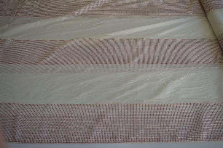 TENDA DA INTERNI ART MARATEA, ADATTO A QUALSIASI AMBIENTE, COMPOSIZIONE 100% POLIESTERE, FONDO AVORIO CON FASCE ORIZZONTALI ROSSE, ALTEZZA 295 CM PIOMBATO SOTTO, ELEGANTE PRATICO SEMITRASPARENTE FA FILTRARE LA LUCE E NON SI STIRA OTTIMO RAPPORTO QUALITA PREZZO , IL PREZZO SI INTENDE A METRI LINEARI!!