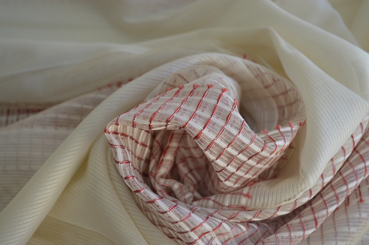 TENDA DA INTERNI ART MARATEA, ADATTO A QUALSIASI AMBIENTE, COMPOSIZIONE 100% POLIESTERE, FONDO AVORIO CON FASCE ORIZZONTALI ROSSE, ALTEZZA 295 CM PIOMBATO SOTTO, ELEGANTE PRATICO SEMITRASPARENTE FA FILTRARE LA LUCE E NON SI STIRA OTTIMO RAPPORTO QUALITA PREZZO , IL PREZZO SI INTENDE A METRI LINEARI!!