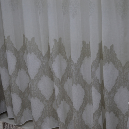 TENDA A METRAGGIO ART. MARLEY COLORE: FONDO AVORIO CON DISEGNI COLOR TORTORA MISURA: ALTA MT 3.00 PIOMBATA SOTTO COMPOSIZIONE: 100 % POLIESTERE IL PREZZO SI INTENDE A METRI LINEARI