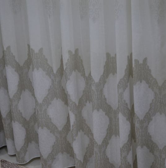TENDA A METRAGGIO ART. MARLEY COLORE: FONDO AVORIO CON DISEGNI COLOR TORTORA MISURA: ALTA MT 3.00 PIOMBATA SOTTO COMPOSIZIONE: 100 % POLIESTERE IL PREZZO SI INTENDE A METRI LINEARI