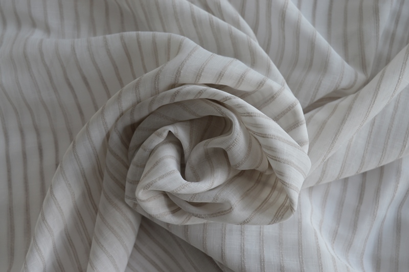 tessuto a metraggio per tenda da confezionare art naturelle rigato col tortora az1 fe00530201 altezza cm 300 piombato sotto composizione 100% poliestere tessuto semitrasparente ottimo rapporto qualita prezzo si lava e non si stira per ordinarlo inserire la quantita che equivale a metro lineare il prezzo si intende x metro lineare