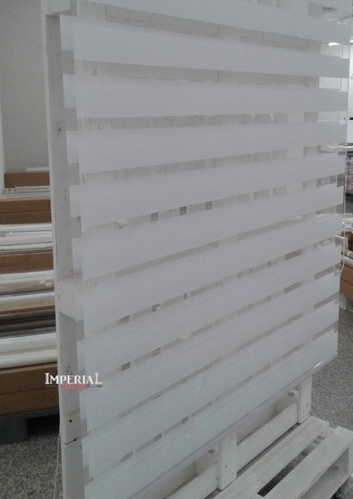 TENDA A RULLO CON POSIZIONAMENTO ROTANTE COLORE GRIGIO TENDA A RULLO IN DOPPIO TESSUTO CON SISTEMA GIORNO E NOTTE. IL TESSUTO E' CARATTERIZZATO DA UN ALTERNANZA DI FASCE TRASPARENTI E PESANTI. LA STRUTTURA E' COMPOSTA DA: UN CASSONETTO IN PVC RINFORZATO CON ALL'INTERNO UN SISTEMA A RULLO; UNA CATENA A COMANDO FRIZIONATA CON IMPUGNATURA; UN PESO TENDA SCORREVOLE; UN KIT MONTAGGIO PER PREDISPOSIZIONE A SOFFITTO O A PARETE. IL SISTEMA A RULLO PERMETTE IL POSIZIONAMENTO DELLA TENDA ALL'ALTEZZA DESIDERATA. POSIZIONANDO LE FASCE SI PUO FARE IL GIOCO DI VEDO NON VEDO . OTTIMO RAPPORTO QUALITA PREZZO