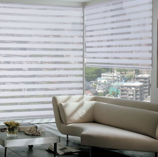 TENDA A RULLO CON POSIZIONAMENTO ROTANTE COLORE GRIGIO TENDA A RULLO IN DOPPIO TESSUTO CON SISTEMA GIORNO E NOTTE. IL TESSUTO E' CARATTERIZZATO DA UN ALTERNANZA DI FASCE TRASPARENTI E PESANTI. LA STRUTTURA E' COMPOSTA DA: UN CASSONETTO IN PVC RINFORZATO CON ALL'INTERNO UN SISTEMA A RULLO; UNA CATENA A COMANDO FRIZIONATA CON IMPUGNATURA; UN PESO TENDA SCORREVOLE; UN KIT MONTAGGIO PER PREDISPOSIZIONE A SOFFITTO O A PARETE. IL SISTEMA A RULLO PERMETTE IL POSIZIONAMENTO DELLA TENDA ALL'ALTEZZA DESIDERATA. POSIZIONANDO LE FASCE SI PUO FARE IL GIOCO DI VEDO NON VEDO . OTTIMO RAPPORTO QUALITA PREZZO