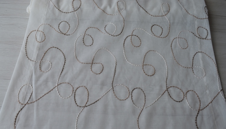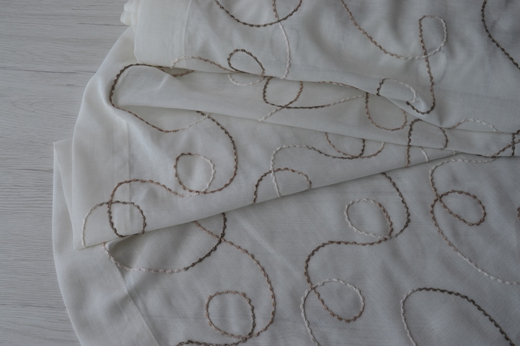 TENDINA A METRAGGIO LARGA CM 60 COLORE AVORIO CON RICAMI IN TORTORA COMPOSIZIONE 100% POLIESTERE IL PREZZO E LA QUANTITA SI INTENDONO A MT LINEARI