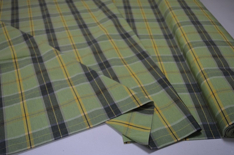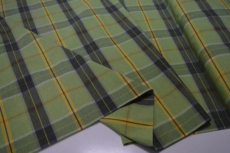tessuto DI cotone stile country a quadri tessitura in filo double face verde