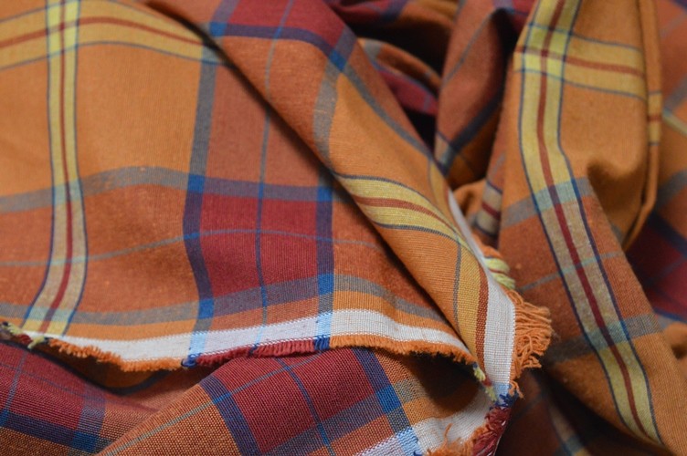tessuto cotone stile country colore bordo e ruggine tessitura tinta in filo alto cm280 composizione 75% cotone 25% poliestere adatto x tovaglie divani tendaggi ecc.. il prezzo si intende per mt lineare