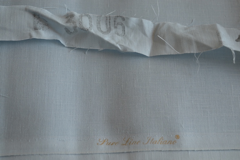 TESSUTO IN PURO LINO ALTO CM 70 COLORE CELESTE CIMMOSATO AMBI I LATI MARCHIATO IN CIMMOSA PURO LINO ITALIANO IL PREZZO SI INTENDE PER MT LINEARI