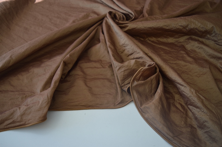 TESSUTO TAFETA STROPICCIATO ART GRINCLE COLORE DOUBLE FACE MARRONE PIOMBATO SOTTO ALTEZZA TESSUTO CM 300 COMPOSIZIONE 100% POLIESTERE IL PREZZO SI INTENDE A METRI LINEARI