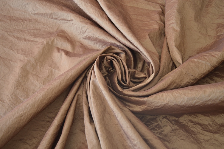 TESSUTO TAFETA STROPICCIATO ART GRINCLE COLORE DOUBLE FACE MARRONE PIOMBATO SOTTO ALTEZZA TESSUTO CM 300 COMPOSIZIONE 100% POLIESTERE IL PREZZO SI INTENDE A METRI LINEARI