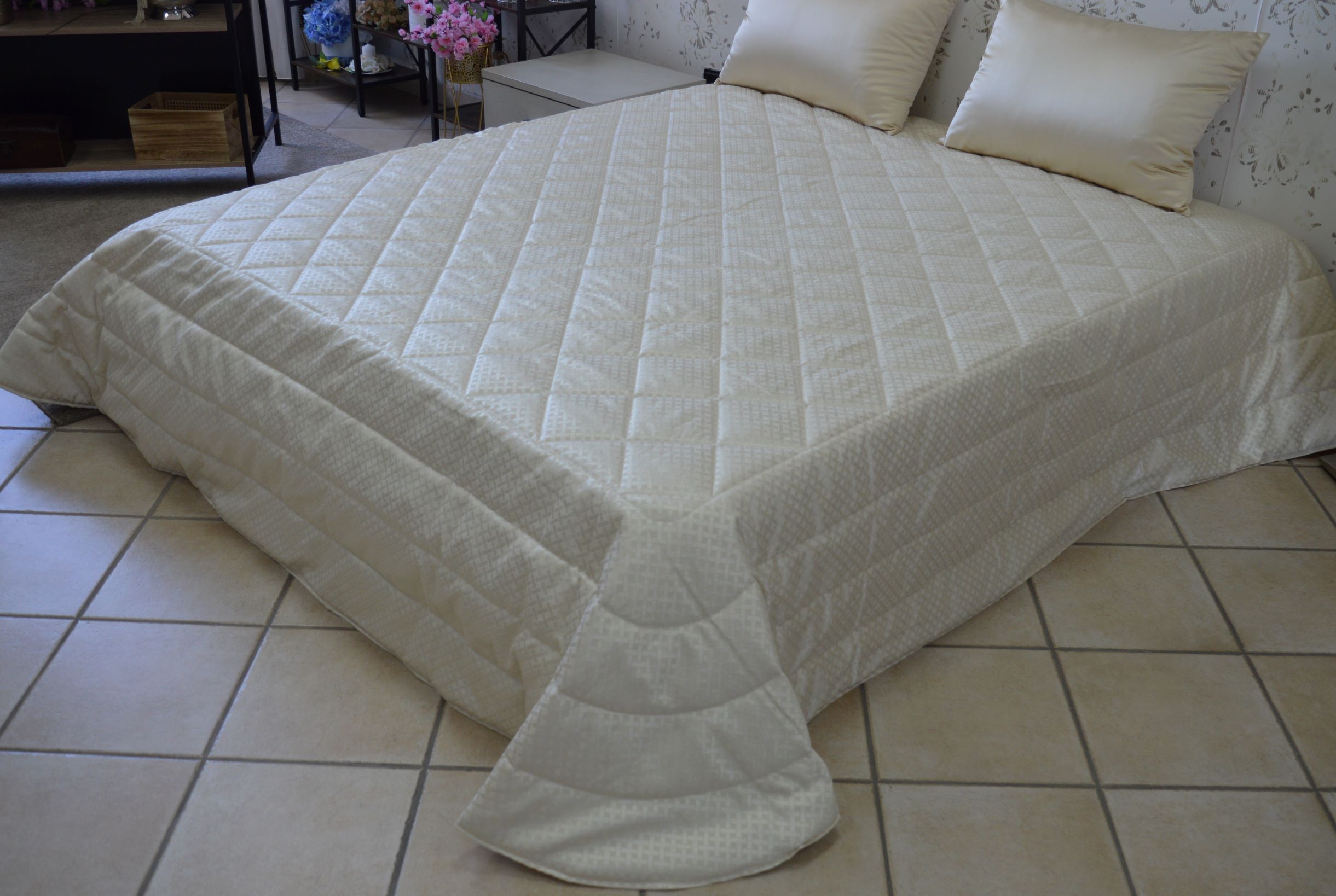 Trapuntino leggero artigianale mis matrimoniale col avorio art versailles