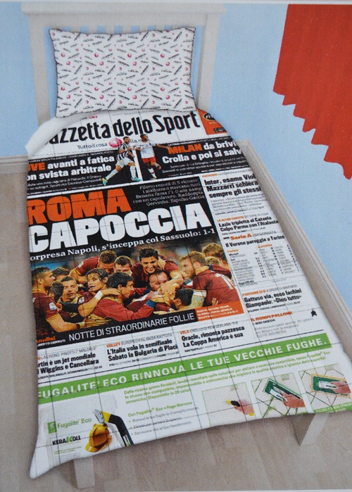 TRAPUNTA PRIMAVERILE GAZZETTA DELLO SPORT DI ROMA CAPOCCIA MISURA X LETTO SINGOLO 180X265 COMPOSIZIONE 100% POLIESTERE PESO 100GR AL MTQ LASCIATI COCCOLARE DALLA STORIA DELLA TUA SQUADRA DEL CUORE