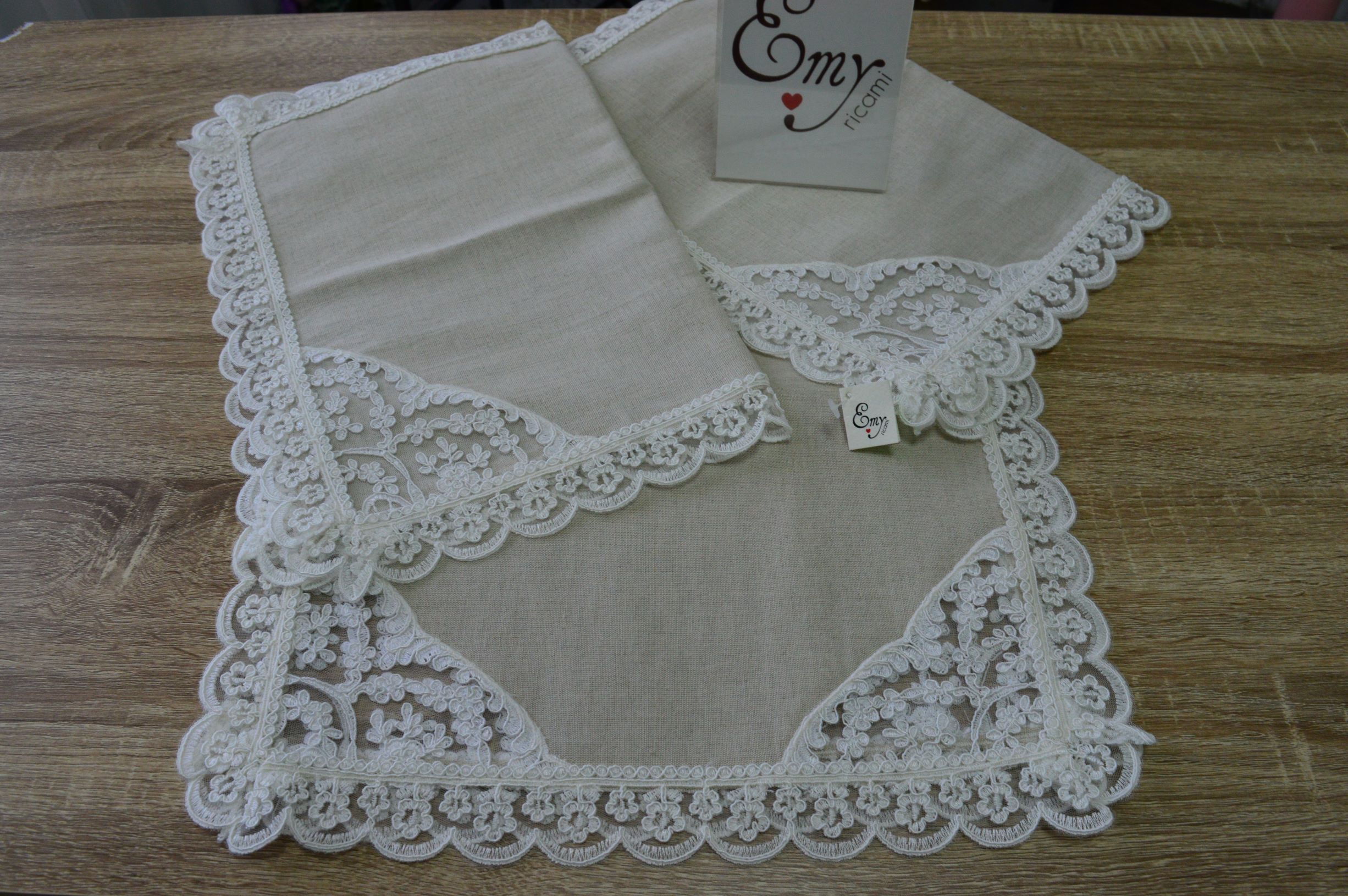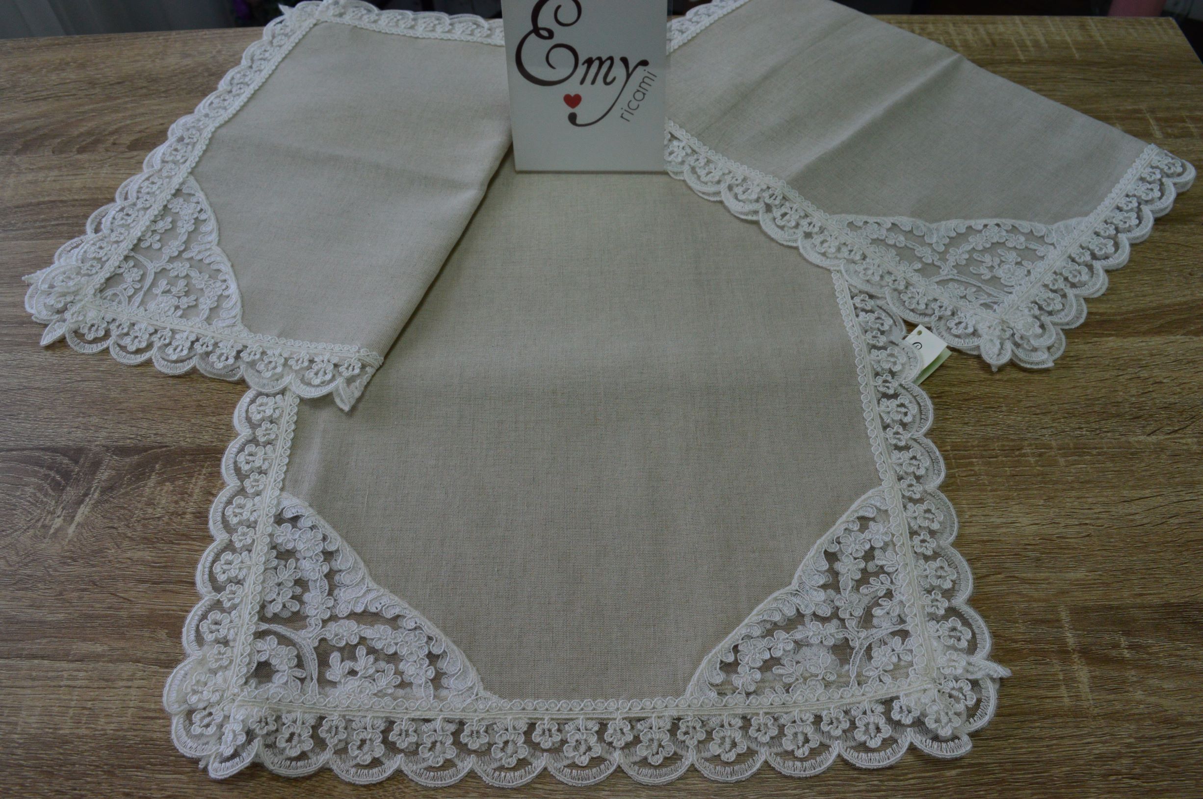 TRIS CENTRI ARTIGIANALI IN LINO MEDIOEVALE E PIZZO REBRODE ART SPARTA