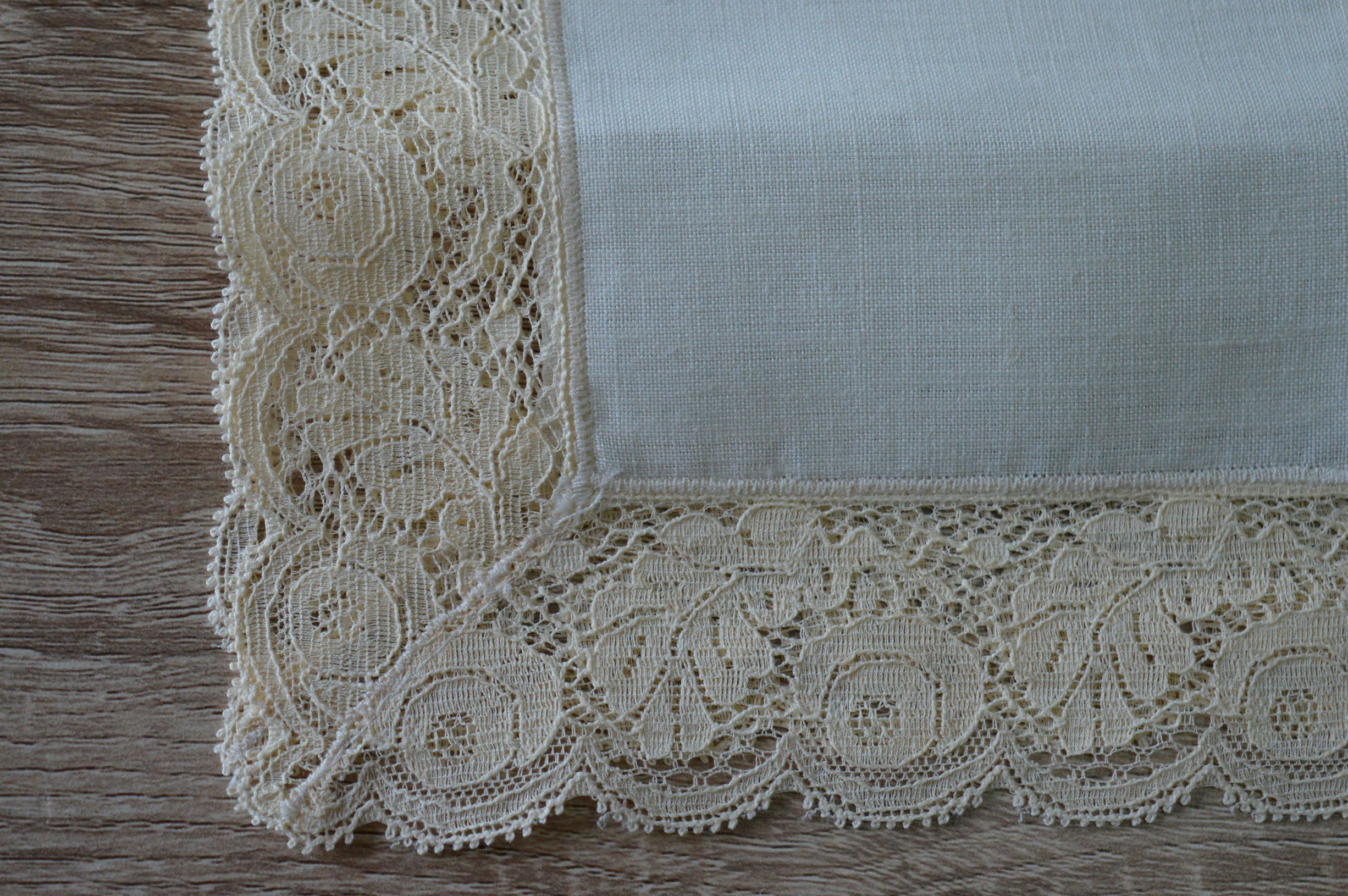 tris centri in lino e pizzo valenciennes