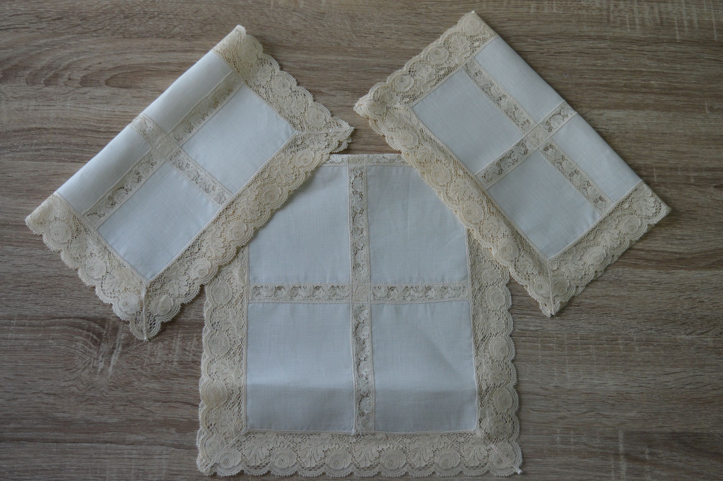 tris centri in lino e pizzo valenciennes