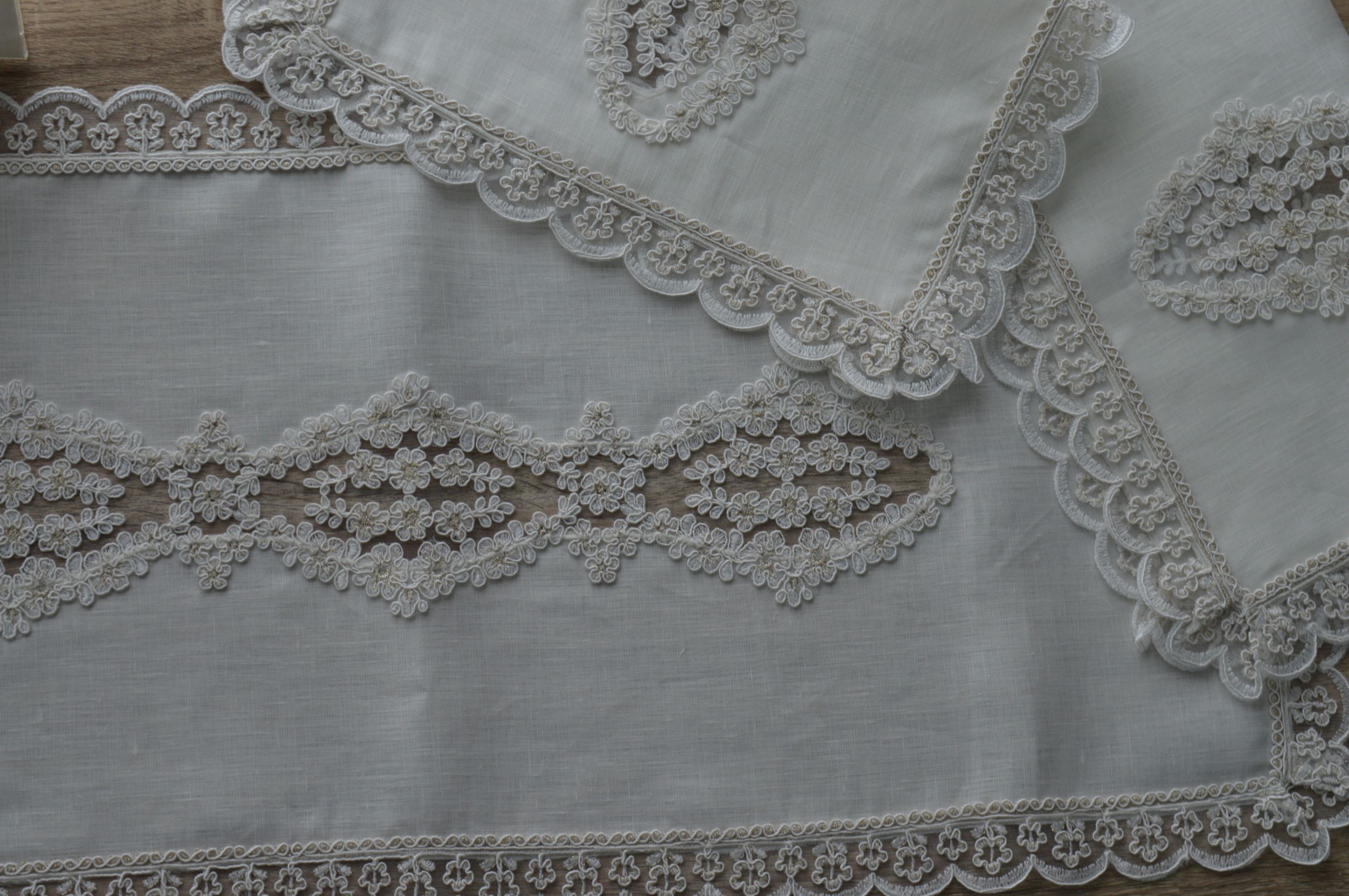 TRIS CENTRI ARTIGIANALI DI EMY RICAMI IN LINO E REBRODÈ PZ 1 MIS GRANDE CM 34X75 PZ 2 MIS PICCOLA CM 34X40 COMPOSIZIONE 100% PURO LINO ITALIANO RIFINITO CON PREGIATISSIMO REBRODÈ IL TUTTO CONFEZIONATO IN UN ELEGANTISSIMA SCATOLA PERSONALIZZATA EMY RICAMI è POSSIBILE SU RICHIESTA PERSONALIZZARE ANCHE LE MISURE